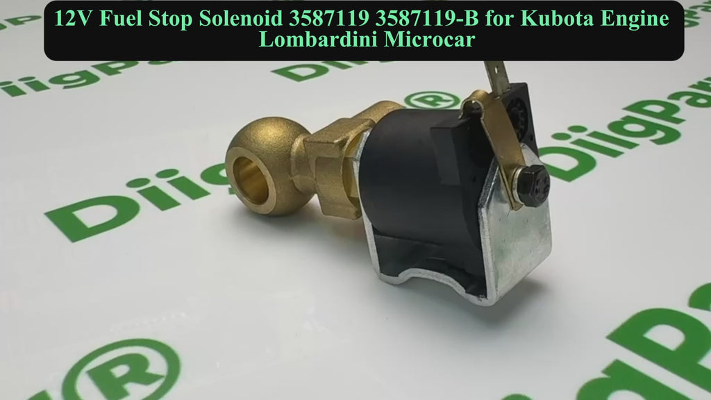 • DiigParr 12V Fuel Stop Solenoid engineered for Kubota and Lombardini engines, including Microcar applications.